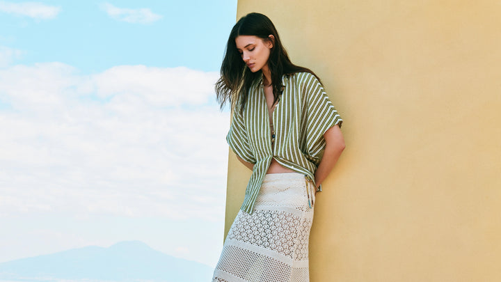 Transport yourself to a sophisticated Italian summer with elevated prints, airy silhouettes, and luxurious fabrics designed for effortless elegance.