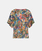 Blouse in habutai silk printed with exclusive designs. Relaxed maxi t-shirt fit with slightly "boat" neck, side slits and wide short sleeve.